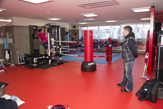 先輩と駅で待ち合わせて、一緒にジムに向かいました。おお…建物の外観は、やはりイメージ通りのボクシングジムと言った感じ。扉を開けるとスパンスパンと大きな音が響いて、ちょっとひるみました。ドキドキしつつもよく見れば、若い女性も確かに多い。後から聞いたら、4割くらいはダイエット目的の女性だそうです。それにイケメンも多く、目の保養になった話は秘密です(笑)